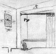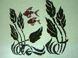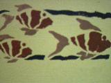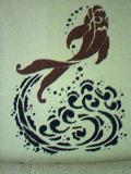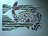 And over the shower, a stencil of a fish is painted too look as if the fish is escaping from the top. |
