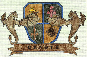 Walking into the room, you look up at the banner. No, this one is actually a shield. Absently you wonder if these Dragons are out to confuse you to death.